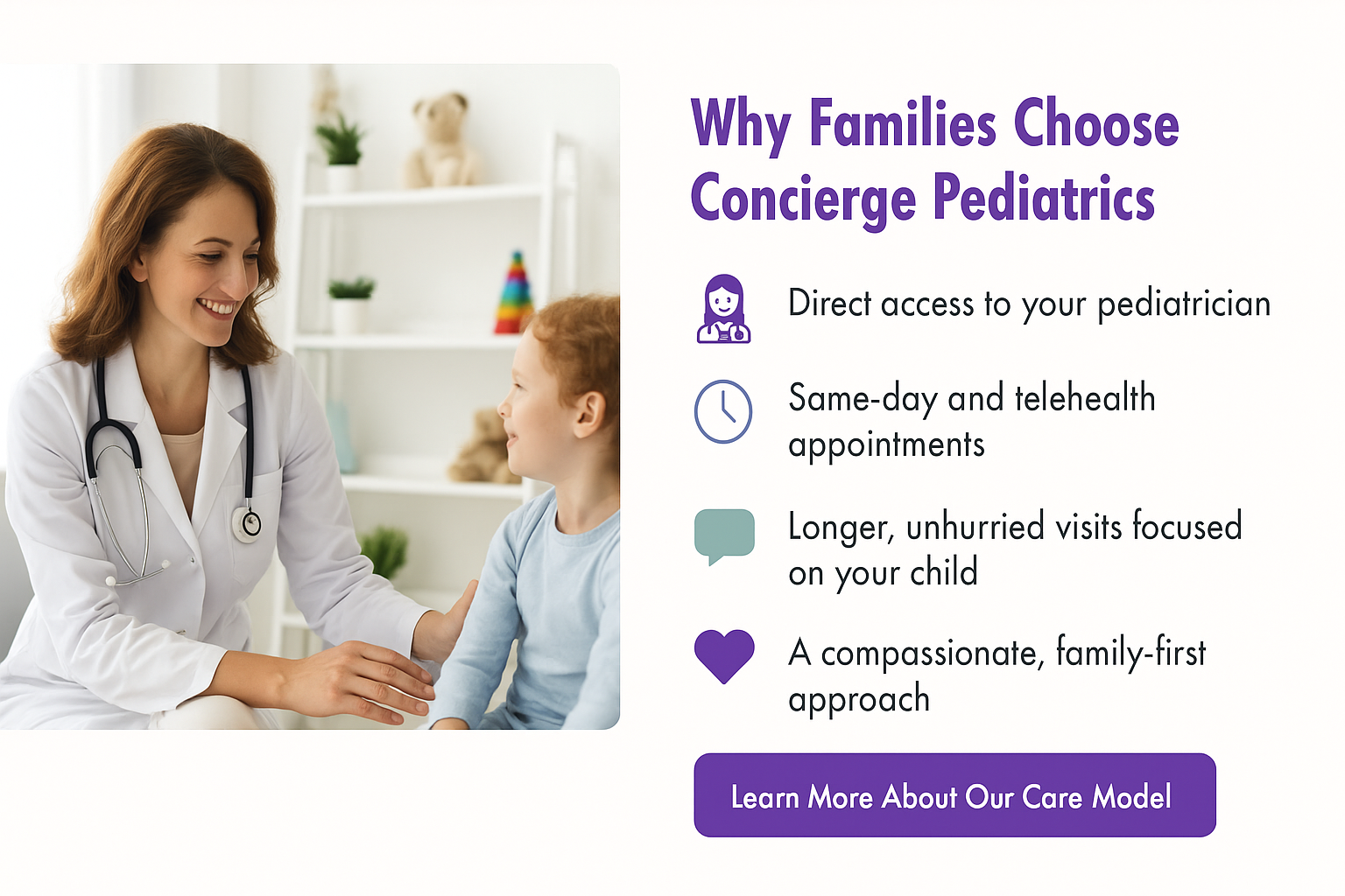 Families who transition to Concierge Pediatrics often tell us the biggest difference is the feeling of partnership and peace of mind. They appreciate having same-day appointments, direct access to their doctor, and the kind of unhurried care that puts their child’s needs first. From our compassionate team to the comfort of our modern office, we strive to make every visit a personal and reassuring experience. Here’s what parents are saying about their care with us.
